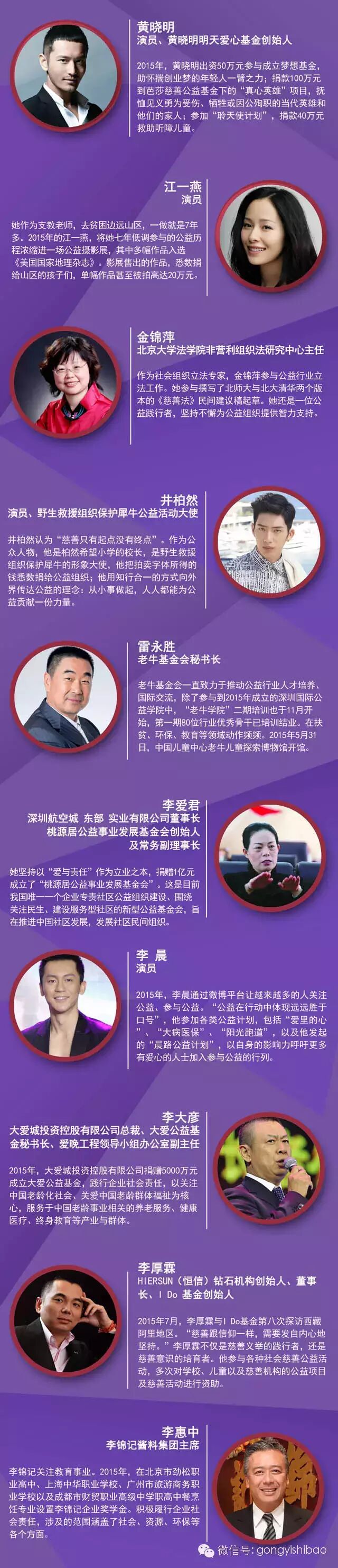 1月26日,由公益时报社和腾讯公益慈善基金会联合举办的第八届“中国公益新闻年会”在北京举办。为了记录2015年的公益历程,展现公益链条上每个位置关键人物的风采,年会还向社会各界公布了“2015年影响中国公益100人”。他们是基金会和社团的秘书长、草根NGO的领路人、一呼百应的名人明星、勇挑重担的企业翘楚、立宪制法的专家学者、记录时代的媒体镜头……他们虽然身份不同,但在时事波澜和社会演变中,却都始终充满善意。他们不仅影响了中国公益,也影响了整个中国。与理事长卢德之博士一同获选的“2015年影响中国公益100人”,还有盖茨、马云、刘强东、曹德旺、马蔚华、张维迎、许戈辉等,他们的名字共同照亮了2015公益的天空。