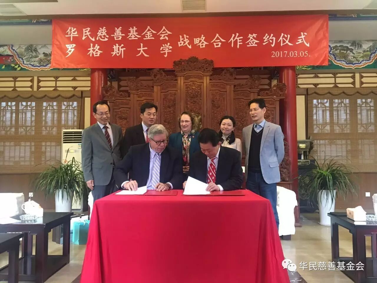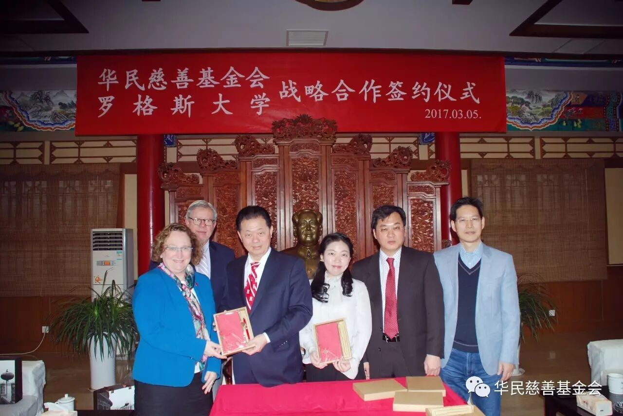 2017年3月5日,罗格斯大学爱德华兹校长、助理校长王健锋、社会学院波特院长、华民研究中心黄建忠主任一行四人访问我会,与我会理事长卢德之博士、秘书长郭军奇先生、理事易思来女士进行了亲切友好的会谈,并充分总结和肯定了双方之前五年的友好合作,之后,双方使这种亲密的战略合作关系得到了延续,举行了华民慈善基金会罗格斯大学战略合作签约仪式。我会将与罗格斯大学在过去5年良好的合作关系上,开始新的五年的合作,共同促进中国和美国在慈善和社会工作的发展。